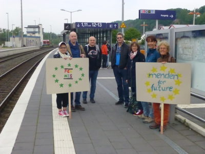 Das Plakat „Menden for Future“ drückt aus: Menden braucht ein Europa, das uns Zukunft sichert durch Klima- und Umweltschutz, Humanität und Gerechtigkeit im Zusammenhalt der Gemeinschaft.