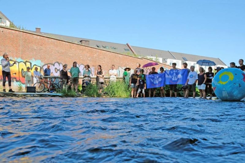 „Das Klima geht baden“, dies symbolisierte ein Globus, der in der Hönne schwamm.
